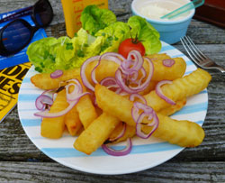 If you are a regular visitor to the British coast during the summer holidays, particularly those frequented by surfers, you may have come across ‘Surfer’s Chips’ in the local beach café. This high energy snack is both delicious and easy on the pocket, and is simply chips topped with sliced onion and grated Cheddar cheese.